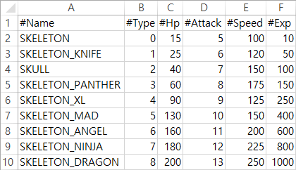 이를 통해 개발자는 코드 수정 없이 데이터만으로 게임 밸런스를 유연하게 조정할 수 있습니다. 이 구조는 유지보수성과 확장성을 모두 고려한 데이터 중심 설계의 핵심이라 할 수 있습니다.void CDataLoader::LoadAllMobData() { std::string filePath = CPathManager::GetInst()->FindPath(DATA_PATH); filePath += "GameData\\Mob_Data.csv"; std::ifstream file(filePath); if (!file.is_open()) { std::cerr << "Cannot open file at: " << filePath << "\n"; return; } std::string line; while (std::getline(file, line)) { if (line[0] == '#') continue; std::vector<std::string> row = Split(line, ','); FRegularMobData data; data.type = static_cast<ERegularMobType>(std::stoi(row[0])); data.baseHP = std::stof(row[1]); data.baseAttack = std::stof(row[2]); data.baseSpeed = std::stof(row[3]); data.baseExp = std::stof(row[4]); CGameDataManager::GetInst()->GetMobDataManager()->AddMobData(data); row.clear(); } file.close(); }