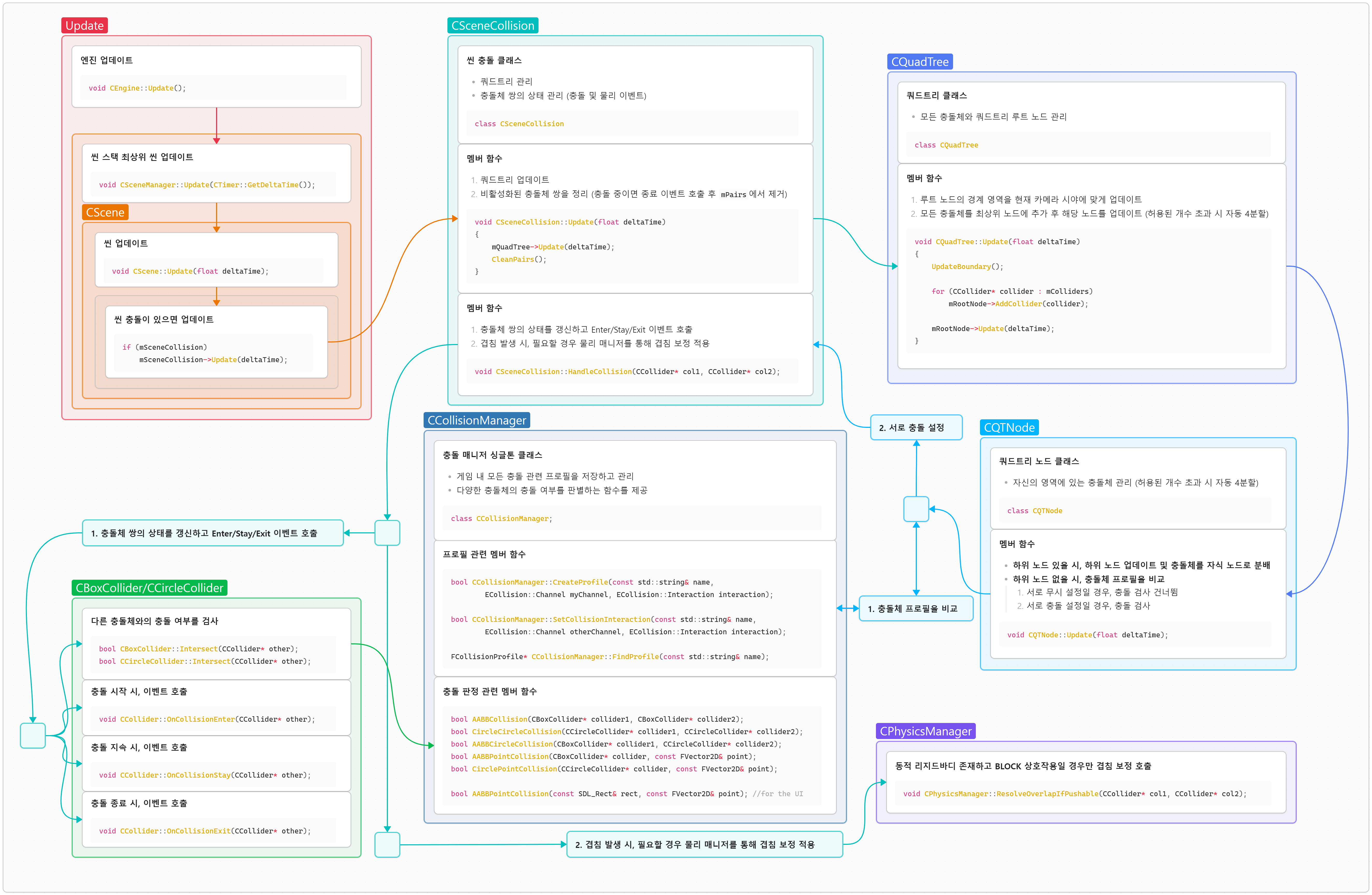 본 흐름도는 충돌 및 물리 시스템의 업데이트 과정을 간단히 보여줍니다.